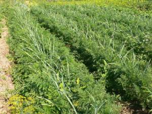 Посеял культуры, а семена сидератов разбросал по дорожкам. Растут культуры, растут и сидераты. На начальном этапе развития овощей, пока они ещё маленькие, подросшие сидераты приносят пользу — служат своеобразными кулисами, создают благоприятный микроклимат.
